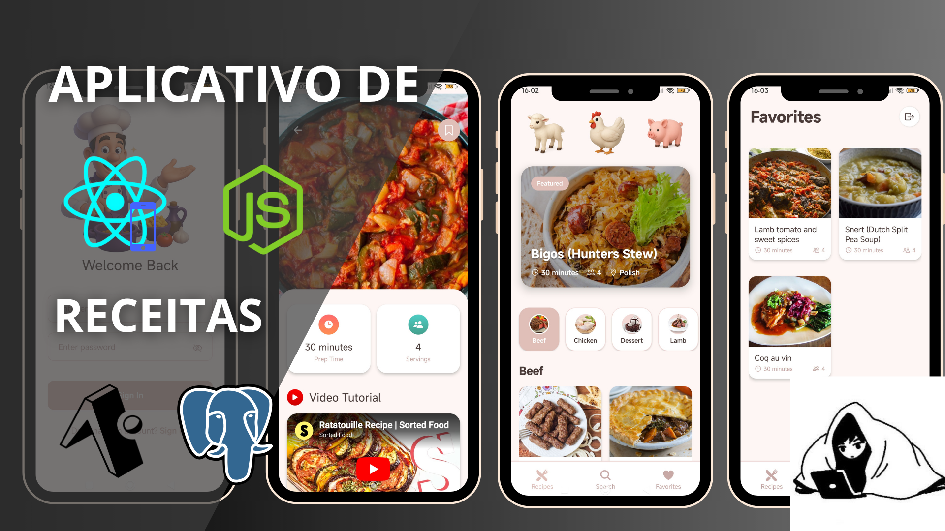 Um aplicativo moderno desenvolvido com Expo + React Native, Node.js, PostgreSQL e autenticação com Clerk, além de integração com a API MealDB para trazer milhares de receitas.